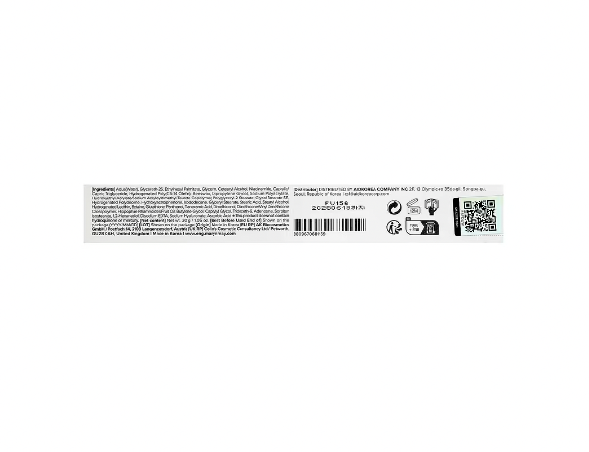 Mary & May se caracteriza por ser transparente con sus ingredientes activos. Esta crema combina un dúo poderoso:
